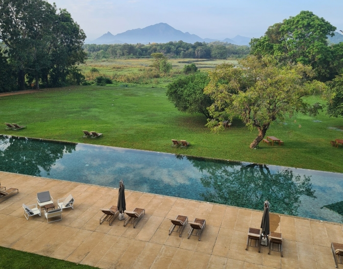 Jetwing Lake ligt net buiten Dambulla, met uitzicht op het meer en de groene heuvels. Zodra je de lobby inloopt en over het lange infinity pool naar buiten kijkt, voel je het meteen: hier kom je echt even op adem. De kamers en suites zijn ruim en licht, met een comfortabele zithoek, een fijne badkamer (ja, mét ligbad) en een balkon waar je het liefst de hele avond blijft zitten. Wij genieten hier van het uitzicht en de mooie zonsondergangen, terwijl de kinderen nog wat lezen in hun bed. De lucht kleurt langzaam oranje en paars boven het meer: vakantiegevoel in hoofdletters.